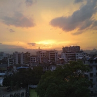 渡河望日落